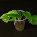 Mladá rostlinka s kořínky, můžete nadále pěstovat hydroponicky (udržujte rašeliník vlhký, občas doplňte zálivku o pár kapek lignohumátu) nebo zasadit do substrátu. Nová rostlina se středním podílem variegace, vhodná pro začínající pěstitele. Raritní zbarvení Monstery Minimy - Rhaphidophora Tetrasperma variegata. Vzácný a sběratelský kousek. Přesazeno do nového substrátu.