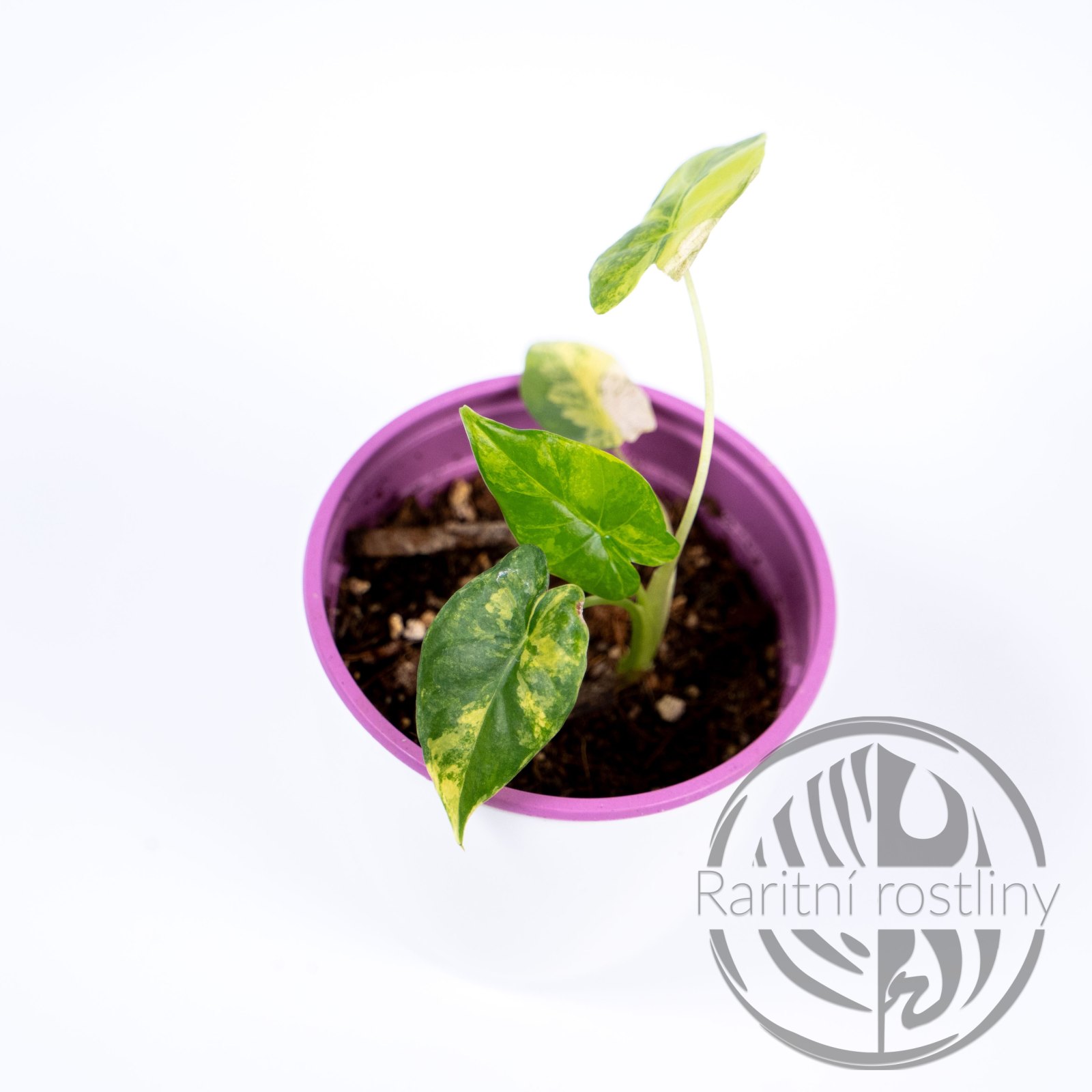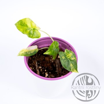 Na robustních, světle zelených řapících vynikají listy jako tropické vějíře. Celkový vzhled působí velmi exoticky a elegantně – díky výrazné variegaci je každá rostlina originálem. Vhodná pro zkušenější pěstitele.