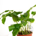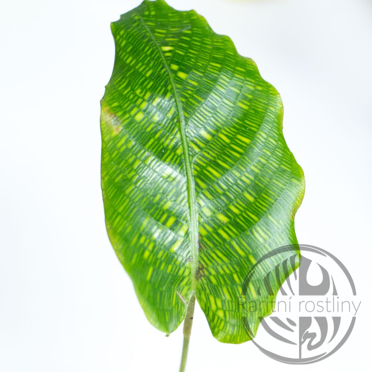 Listy jsou středně velké, oválné, jemně zašpičatělé. Povrch listu je pokrytý složitou mozaikou světlých a tmavě zelených linek a čar, které vytvářejí efekt síťoviny nebo digitálního vzoru (network = síť). Z dálky působí listy jemně zeleně, zblízka je vzor velmi detailní a fascinující.