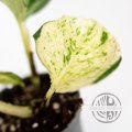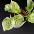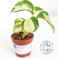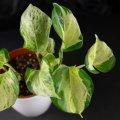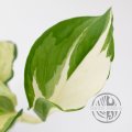 Epipremnum Manjula má nádherné, široké listy s jedinečnou variegací v odstínech bílé, krémové, světle zelené a tmavě zelené barvy. Každý list je jiný, s náhodně rozprostřenými skvrnami a mramorovanými vzory. Někdy také nese název Happy Feet, Manjula Pothos, Šplhavnice Happy Leaf.