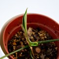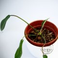 Mladá rostlina, typicky své podlouhlé listy získá během dospělosti. K rostlině je vhodné připevnit opěru, do které může postupně kořenit.