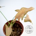 Listy posetými bílými a růžovými skvrnami na zeleném podkladu – každý list je originál. Ocení světlé rozptýlené světlo (více světla = výraznější růžová). Zalévat až po lehkém proschnutí; má rádo vzdušný substrát a vyšší vlhkost. Vhodné na oporu, zaštipování podporuje zahuštění. Přesazeno do nového substrátu.
